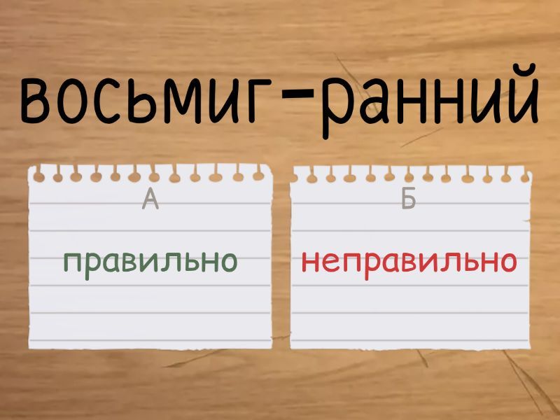 1) восьмиг-ранний a) правильно b) неправильно 2) Маріч-ка a) неправильно b) правильно 3) швидко-стиглий a) правильно b) неправильно 4) ша-хтар a) неправильно b) правильно 5) доб-рати a) неправильно b) правильно 6) най-довший a) правильно b) неправильно 7) пом-'якшення a) неправильно b) правильно 8) надход-ження a) правильно b) неправильно 9) від-звучати a) неправильно b) правильно 10) екра-нний a) правильно b) неправильно 11) паризь-кий a) правильно b) неправильно 12) а-кваріум a) правильно b) неправильно