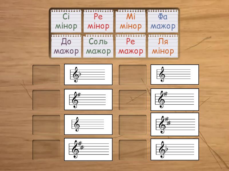 До мажор, Ля мінор, Соль мажор , Мі мінор, Ре мажор, Сі мінор, Фа мажор , Ре мінор,