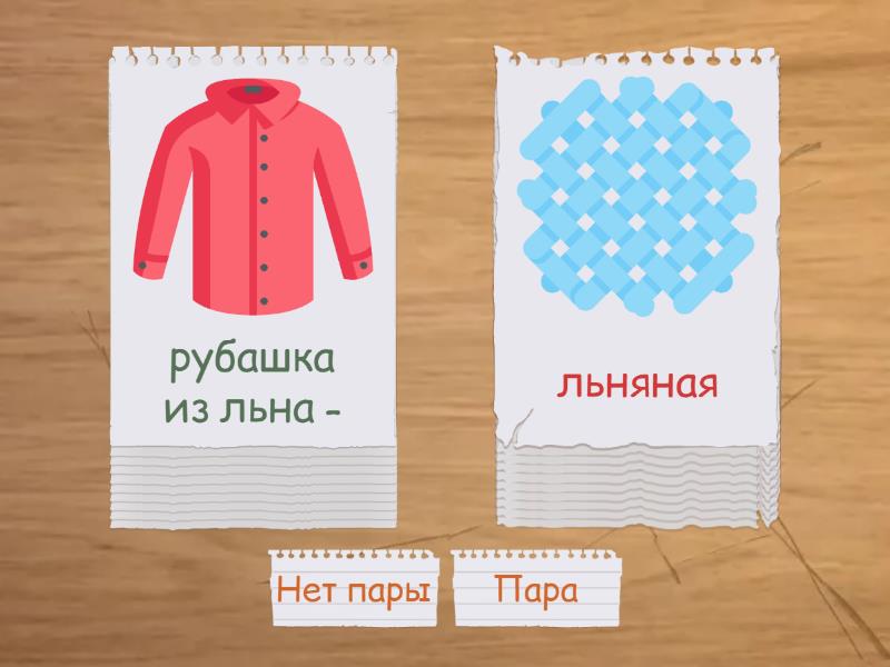 рубашка из льна - - льняная, футболка из хлопка - - хлопковая, сарафан из шёлка - - шёлковый, куртка из кожи - - кожаная, свитер из шерсти - шерстяной, жилет из пуха - - пуховый, пиджак из драпа - - драповый, шуба из меха - - меховая, юбка из джинсы - - джинсовая, платье из трикотажа - - трикотажное,