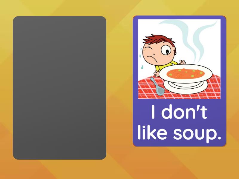 I like soup., I don't like soup., I like biscuits., I don't like biscuits., I like cheese., I don't like eggs..