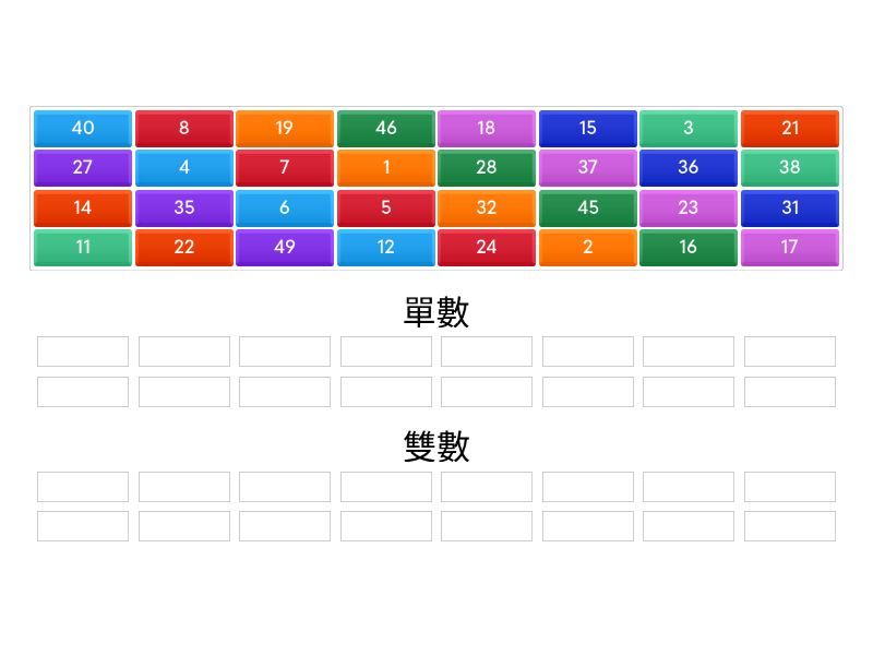 單數: 1, 17, 23, 35, 31, 3, 7, 5, 11, 19, 21, 27, 37, 45, 49, 15, 雙數: 2, 6, 4, 12, 36, 38, 14, 40, 28, 32, 46, 24, 22, 16, 8, 18,