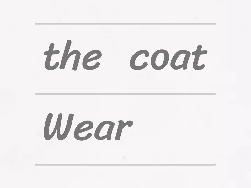 Wear the coat, Sing the song, Don’t touch the hydrochloricacid(塩酸), Let’s make a snowman, Don’t leave the classroom yet(まだ), Where is my blue notebook ?, Who is this man ?, Which is my locker ?, Which chair is yours?, Where is our mother ?, I held her hand yesterday, Did you paint the picture last week ?, I did not do the homework last night, I ate breakfast this morning, Did he go home after lunchtime ?,