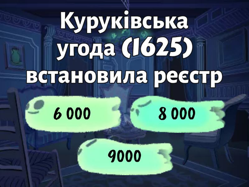 1) Куруківська угода (1625) встановила реєстр a) 6 000 b) 8 000 c) 9000 2) Очолював повстання 1625 року a) Я. Острянин b) Т.Трясило c) М. Жмайло 3) Очолював повстання 1630 року. a) Т. Трясило b) Я.Острянин c) М. Жмайло 4) Т. Г. Шевченко в своєму творі "Тарасова ніч" описував події повстання, під керівництвом a) М. Жмайло b) Т. Трясило c) І. Суліми 5) Згідно, Переяславській угоді, 1630 року реєстр становив a) 6 000 b) 8 000 c) 10 000 6) "Золота рота" має відношення до повстання a) І. Сулими b) С. Наливайка c) Т.Трясило 7) Приводом до якого повстання стало будівництво фортеці Кодак a) Т.Трясило b) І.Сулими c) К.Косинського 8) 1635 рік повстання a) І. Сулими b) Т. Трясило c) К.Косинського 9) План фортеці Кодак належить a) Гійом де Боплан b) Степан Ковнір c) П. Неєлов 10) "Аби на вікі вічні позбавити козаків , всіх своїх прав та привілеїв" це текст a) "Ординації війська Запорозького! b) "Статті для заспокоєння руського народу" c) "Жалувана грамота дворянству" 11) Період 1638-1648 років отримав назву a) "Золотого спокою" b) "Козацькі повстання" c) "Доба героїчних козацьких походів" 12) 1637рік повстання очолив a) П.Бут b) Я.Остряниця c) Д. Гуня