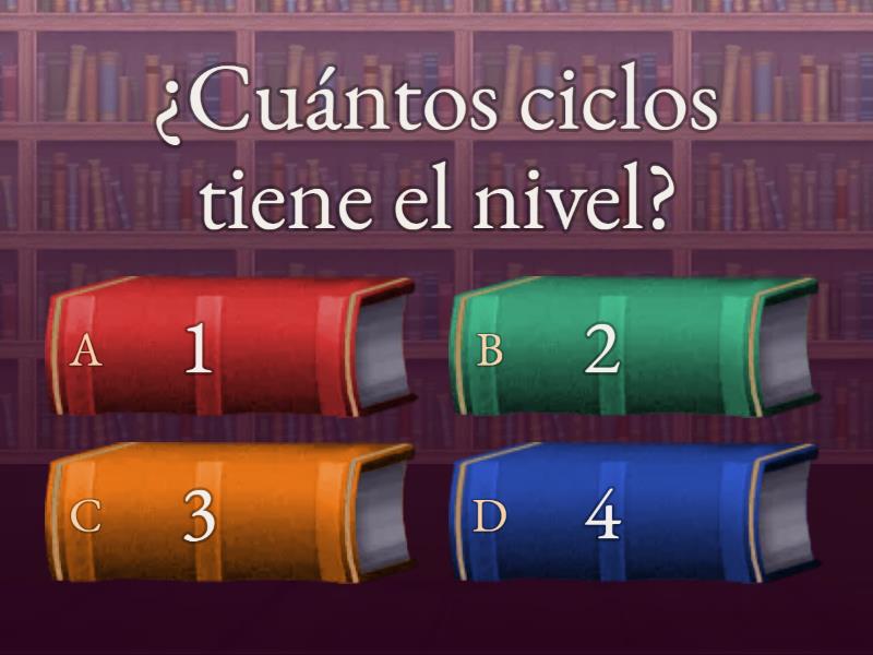 1) ¿Cuántos ciclos tiene el nivel? a) 1 b) 2 c) 3 d) 4 2) ¿Con qué actividades debo cumplir fuera de clase? a) Práctica en línea b) Trabajo autónomo c) Todas las anteriores d) Preparación de clases e) Planes de acción f) Ninguna de las anteriores 3) Los componentes a evaluar son: a) Vocabulary and grammar b) Strategy and learning c) Communication, language, learning and project d) Ninguno de los anteriores 4) ¿Qué es assessment? a) Un verbo b) El momento de evaluar lo aprendido c) La preparación de clases d) EL trabajo que hago en la plataforma 5) Nuestras plataformas son: a) Macmillan y Q10 b) Padlet c) Google classroom 6) ¿Debo hacer proyectos para los ciclos? a) Sí b) Es opcional c) No 7) ¿Está bien usar traductor en clase? a) Verdadero b) Falso 8) En Q10 podemos: a) Ver nuestro desempeño e información b) Todas las anteriores c) Practicar los temas de clase 9) ¿Se puede perder por fallas? a) Verdadero b) Falso 10) Nuestra clase empieza y termina a las a) 5:15 - 6:45 b) 5:20 - 7:00 c) 5:00 - 7:00 11) ¿Qué es el I-P-A a) Una receta b) Una estrategia c) El alfabeto fonético internacional 12) ¿Cuál es una estrategia que puedo usar fuera de clase? a) Crear mis flashcards b) Prestar atención a las preguntas antes de un listening/reading c) Grabar mi voz leyendo un texto en voz alta d) Grabar mi voz respondiendo una pregunta aleatoria de acuerdo a mi nivel e) Todas las anteriores f) Ninguna de las anteriores 13) La class preparation debe tener: a) Word and meaning b) Word and example c) Word, pronunciation, meaning, and example d) No es necesario hacerla 14) El communication objective es a) La pronunciación b) Hacer oraciones y expandirlas c) Lo que voy a poder hacer con el idioma durante y después de la clase d) la gramática y el vocabulario 15) El language objective es: a) La habilidad de hablar b) La gramática y el vocabulario de la lección c) Usar bien el I-P-A d) La nota final 16) ______ evaluar a nuestros compañeros a) No debemos b) Debemos c) Es opcional