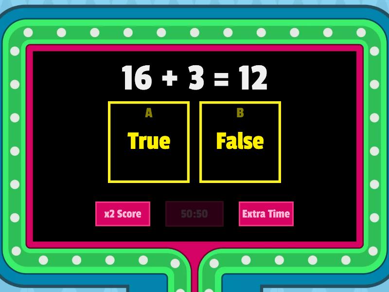 1) 16 + 3 = 12 a) True b) False 2) 12 + 7 = 19 a) True b) False 3) 15 + 5 = 20 a) True b) False 4) 14 + 5 = 19 a) True b) False 5) 13 + 2 = 10 a) True b) False 6) 11 + 7 = 18 a) True b) False 7) 16 + 3 = 20 a) True b) False 8) 14 + 2 = 16 a) True b) False 9) 13 + 5 = 18 a) True b) False 10) 17 + 3 = 12 a) True b) False 11) 13 + 4 = 15 a) True b) False 12) 15 + 2 = 17 a) True b) False