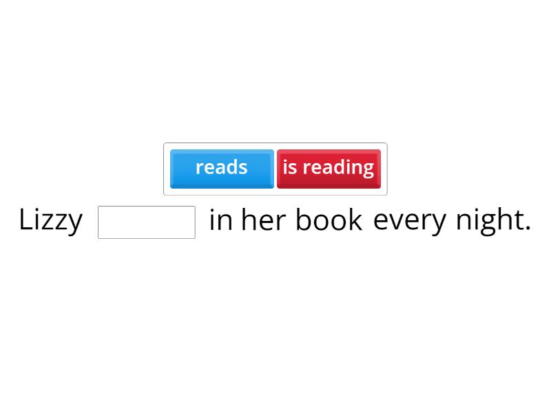 Lizzy ____ in her book every night. Lola ____ to work by car. Ben ____ in a hotel this summer. I ____ the newspaper at the moment. We ____ in Florida. This week we ____ them how to drive. My mom ____ on saturdays. We ____ a movie this evening.