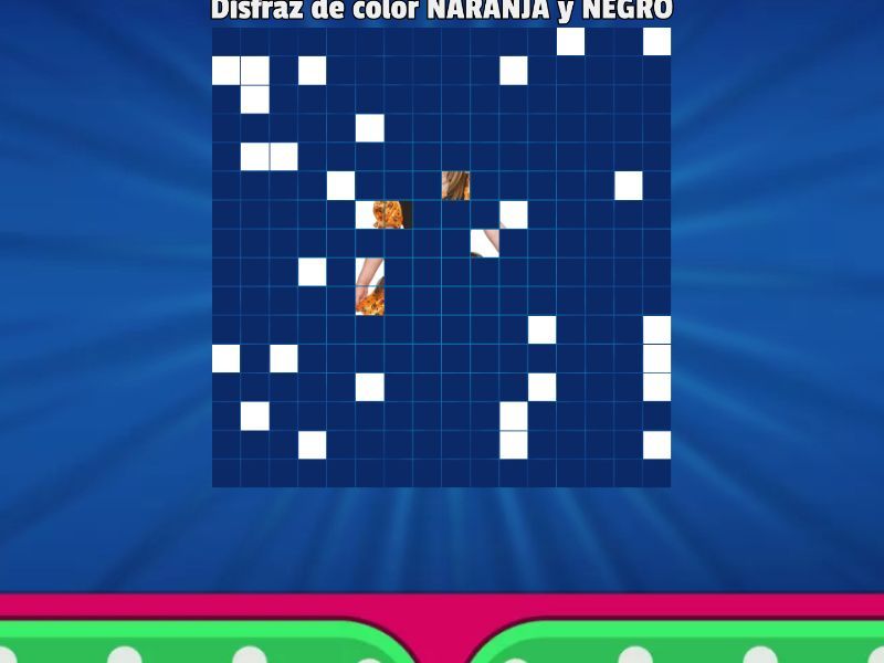 1) Disfraz de color BLANCO a) calabaza b) bruja c) fantasma 2) Disfraz de color AMARILLO y NEGRO a) mariquita b) abeja c) vaca 3) Disfraz de color ROJO y NEGRO a) mariquita b) fantasma c) tomate 4) Disfraz de color BLANCO a) tomate b) angel c) brócoli 5) Disfraz de color NARANJA con un poco de VERDE a) calabaza b) naranja c) zanahoria 6) Dizfraz de color NARANJA  con un poco de VERDE a) tigre b) bruja c) calabaza 7) Disfraz de color MARRÓN, AZUL, AMARILLO y NEGRO a) Hombre perro b) Arco íris c) Gato 8) Disfraz de color ROJO a) tomate b) salsa de tomate c) crayola 9) Disfraz de color VERDE a) tomate b) rana c) brócoli 10) Disfraz de color BLANCO y NEGRO a) vaca b) esqueleto c) fantasma 11) Disfraz de color NARANJA y NEGRO a) tigre b) bruja c) mariposa 12) Disfraz de color ROJO, AZUL y un poco de NEGRO a) superman b) hombre araña c) capitán america 13) Disfraz de color ROJO, AZUL y un poco de BLANCO a) hombre araña b) capitán america c) superman 14) Disfraz de color ROJO, AZUL y ORO a) superman b) capitán américa c) mujer maravilla 15) Disfraz de color NARANJA y NEGRO a) bruja b) calabaza c) tigre