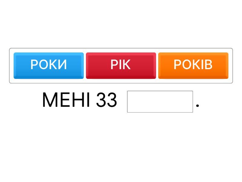 МЕНІ 33 ____. ЦІЙ ДИТИНІ 1 ____. МАРТА МАЄ 45 ____. ЙОМУ 15 ____. ЇМ 20 ____. НАСТІ 31 ____. ЦІЙ МАШИНІ 102 ____. ЦЕЙ ПАЛАЦ МАЄ 111 ____. ЦІЙ КНИЗІ 21 ____. МЕНІ 63 ____.