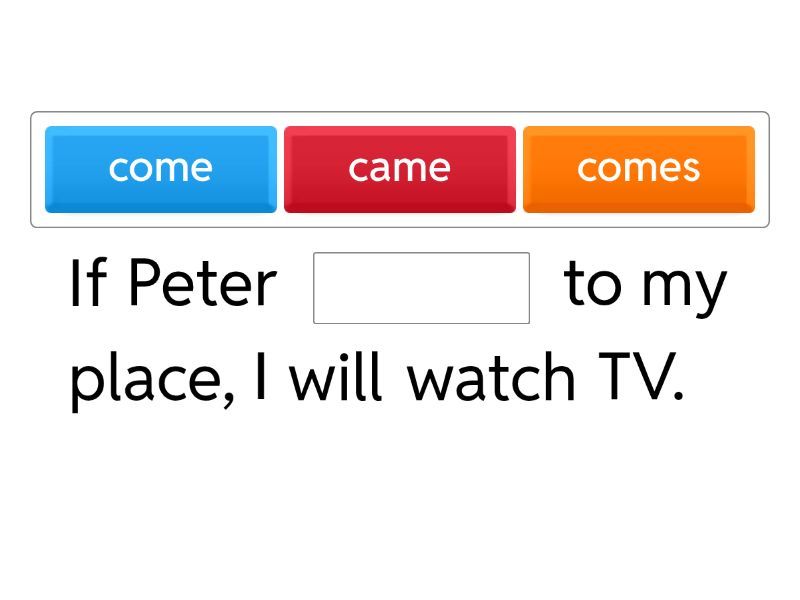 If Peter ____ to my place, I will watch TV. We ____ this book if our mother gives us some money. If the bags ____ too heavy I’ll help you carry them. If you don’t take the map, we____ lost in the city We’ll call the police,if you ____ leave us alone If you win the first prize, you’ll ____ a holiday in New York Her father ____ angry if she goes to this party If we ____ together, we will finish it quicker. If you ____ what I told you, you'll find the place easily. He ____ English quicker if he goes to England. ____ he ____ the test if he doesn't study hard? If it ____ sunny, I will go for a walk. ____ we ____ out if it rains? If he ____ some medicine, he will feel better. You ____ the bus if you don't hurry up.