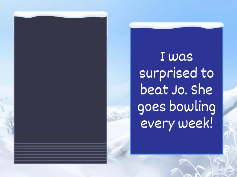 We shared a piece of chocolate cake. It was delicious., We went to Lola’s. At Lola’s, you can get cheap tacos on Wednesdays., There was free wifi. It was very convenient., I was surprised to beat Jo. She goes bowling every week!, Then the DJ put the song Perfect on. It reminded me of Dani’s wedding., That’s Phil. His friend is throwing the party tomorrow night., We had seats in the front row. The seats probably cost a fortune., The club was packed. This was unusual for a Tuesday., We were coming home from Jack’s place. We got on the wrong bus..