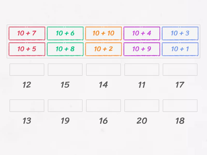 10 + 1 - 11, 10 + 2 - 12, 10 + 3 - 13, 10 + 4 - 14, 10 + 5 - 15, 10 + 6 - 16, 10 + 7 - 17, 10 + 8 - 18, 10 + 9 - 19, 10 + 10 - 20,