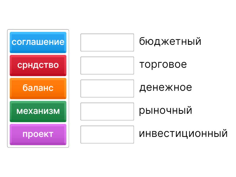 соглашение - денежное, срндство - рыночный, проект - бюджетный, механизм - инвестиционный , баланс - торговое,