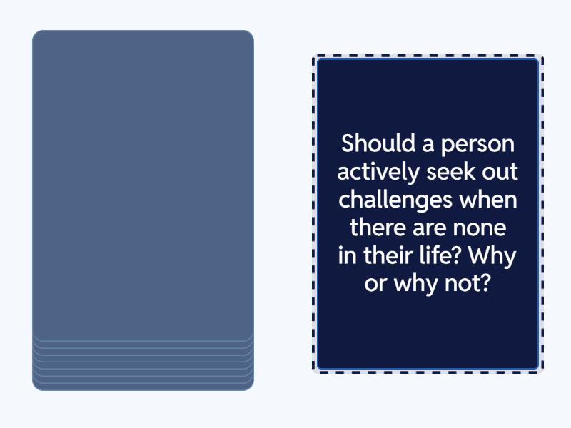 What has been the biggest challenge you've faced in Australia?, Do you think that even the most difficult challenges (like fighting cancer) can have a positive outcome? Explain how. , Should a person actively seek out challenges when there are none in their life? Why or why not?, When solving relationship problems with your family and loved ones, are you confrontational or avoidant?, Do you know anyone who has overcome significant challenges and became a stronger and better person afterwards?, Is it sometimes okay to give up on a challenge? Why or why not?, What kind of problems are you good at solving? Practical, organisational, or emotional? , Would you rather solve problems on your own or lean on others for support?, "What doesn't break you makes you stronger" - agree or disagree.