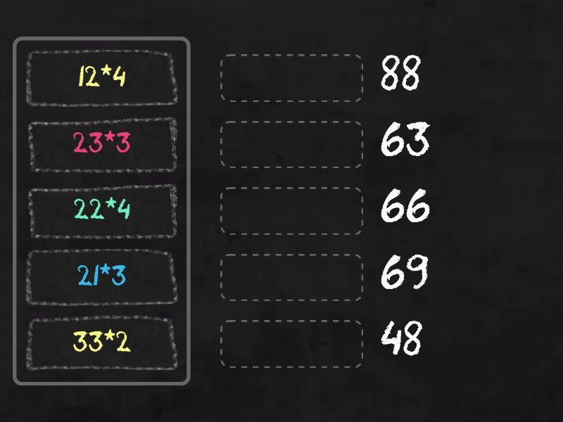 23*3 - 69, 33*2 - 66, 12*4 - 48, 21*3 - 63, 22*4 - 88,