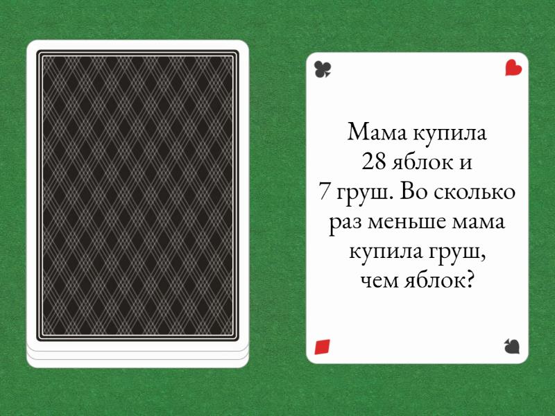 В зоопарке живут 18 мартышек и 2 тигра. Во сколько раз мартышек больше, чем тигров?, У Васи 15 грузовых машинок и 5 спортивных. На сколько меньше спортивных машинок, чем грузовых?, Мама купила 28 яблок и 7 груш. Во сколько раз меньше мама купила груш, чем яблок?, В столовой 54 стула и 9 столов. На сколько стульев больше, чем столов?.