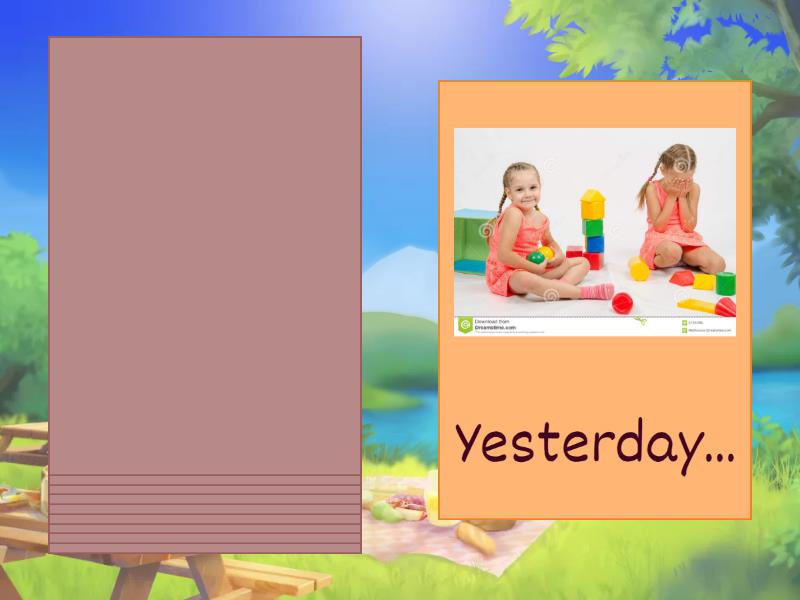 Yesterday ..., Yesterday..., Yesterday..., Yesterday..., Yesterday... (to school late), Yesterday..., Yesterday..., Yesterday..., Yesterday..., Yesterday... (a present).