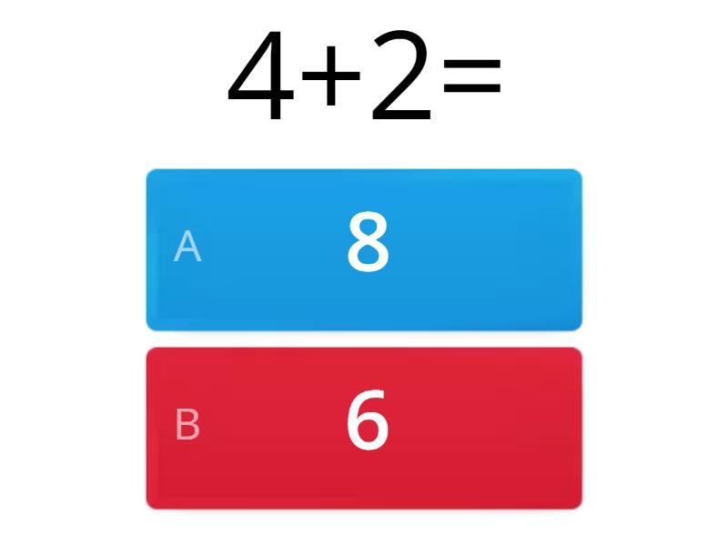 1) 4+2= a) 8 b) 6 2) 2+2= a) 1 b) 4 3) 2+1= a) 7 b) 3 4) 5+1= a) 6 b) 8 5) 3+5= a) 8 b) 5 6) 1+3= a) 4 b) 8 7) 3+2= a) 2 b) 5 8) 2+2= a) 4 b) 5 9) 5+5= a) 9 b) 10 10) 3+2= a) 5 b) 6 11) 4+2= a) 6 b) 3 12) 1+5= a) 7 b) 6 13) 5+4= a) 9 b) 8 14) 5+2= a) 9 b) 7 15) 4+4= a) 8 b) 9