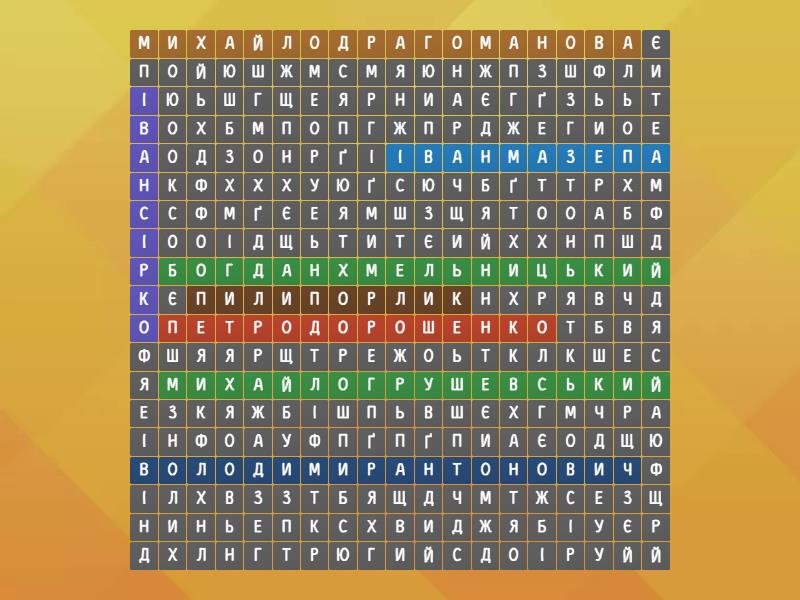 Богдан Хмельницький , Іван Сірко, Петро Дорошенко , Іван Мазепа , Пилип Орлик , Володимир Антонович , Михайло Драгоманова , Михайло Грушевський ,