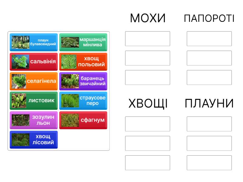 Мохи, папороті, хвощі, плауни_ПРЕДСТАВНИКИ