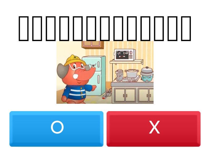 1) 插頭可以都在同一條延長線上 a) O b) X 2) 插頭分開,不集中在同一條延長線上 a) O b) X 3) 插頭上面很多灰塵還是可以使用 a) O b) X 4) 延長線或插座可以靠近火源 a) O b) X 5) 延長線要選有保險絲的 a) O b) X 6) 延長線可以捲成一圈 a) O b) X 7) 可以用拉的拔插頭 a) X b) O 8) 電線不可以壓在櫃子底下 a) O b) X