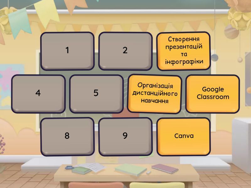 Canva - Створення презентацій та інфографіки, Google Classroom - Організація дистанційного навчання, Kahoot - Проведення інтерактивних тестів, ChatGPT - Генерація навчальних матеріалів, WordWall - Створення інтерактивних ігор,
