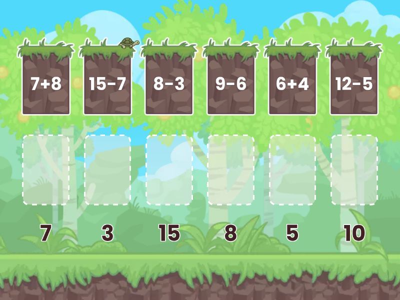 8-3 - 5, 6+4 - 10, 12-5 - 7, 7+8 - 15, 9-6 - 3, 15-7 - 8,