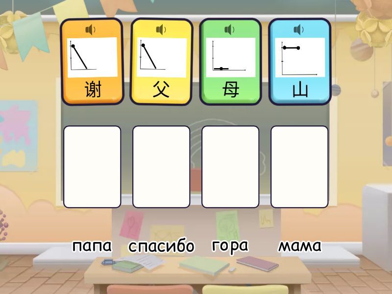 山 - гора, 父 - папа, 母 - мама, 谢 - спасибо,