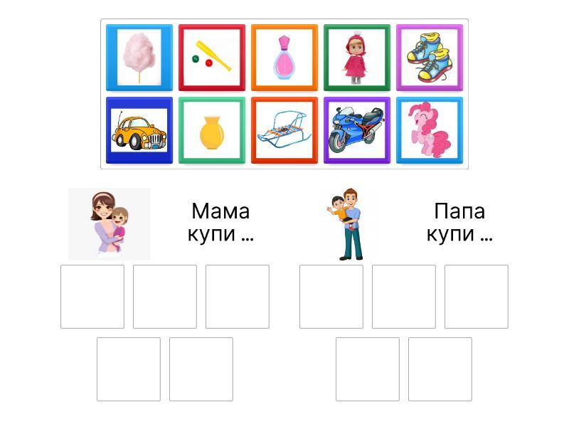 Мама купи ...: , , , , , Папа купи ...: , , , , ,