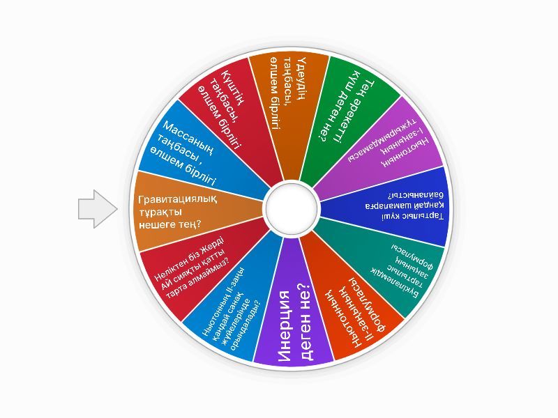 1) Массаның таңбасы , өлшем бірлігі 2) Күштің таңбасы, өлшем бірлігі 3) Үдеудің таңбасы, өлшем бірлігі  4) Тең әрекетті күш деген не? 5) Ньютонның І-заңының тұжырымдамасы 6) Тартылыс күші қандай шамаларға байланысты? 7) Бүкіләлемдік тартылыс заңының формуласы 8) Ньютонның ІІ-заңының формуласы 9) Инерция деген не? 10) Ньютонның ІІ-заңы қандай санақ жүйелерінде орындалады? 11) Неліктен біз Жерді АЙ сияқты қатты тарта алмаймыз? 12) Гравитациялық тұрақты нешеге тең?