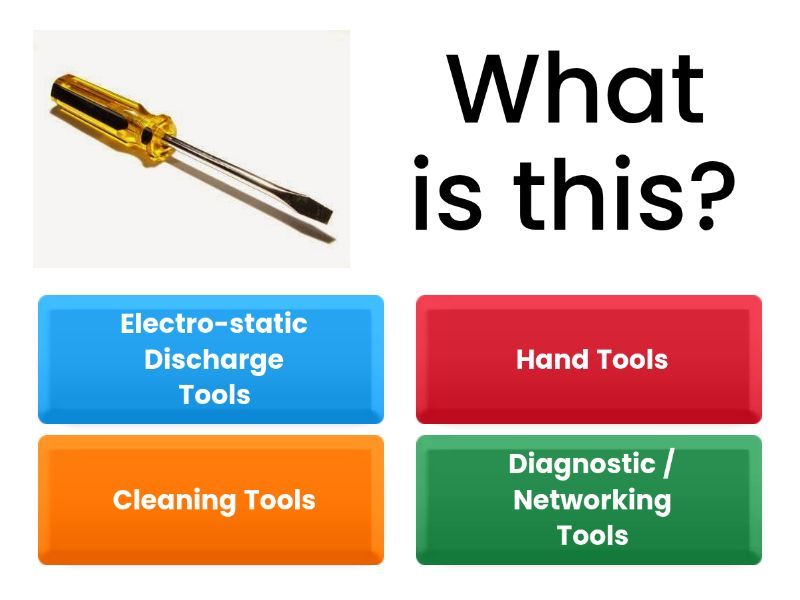 1) What is this? a) Electro-static Discharge Tools b) Hand Tools c) Cleaning Tools d) Diagnostic / Networking Tools 2) What is this? a) Electro-static Discharge Tools b) Hand Tools c) Cleaning Tools d) Diagnostic / Networking Tools 3) What is this? a) Electro-static Discharge Tools b) Hand Tools c) Cleaning Tools d) Diagnostic / Networking Tools 4) What is this? a) Electro-static Discharge Tools b) Hand Tools c) Cleaning Tools d) Diagnostic / Networking Tools 5) What is this? a) Electro-static Discharge Tools b) Hand Tools c) Cleaning Tools d) Diagnostic / Networking Tools 6) What is this? a) Electro-static Discharge Tools b) Hand Tools c) Cleaning Tools d) Diagnostic / Networking Tools 7) What is this? a) Electro-static Discharge Tools b) Hand Tools c) Cleaning Tools d) Diagnostic / Networking Tools 8) What is this? a) Electro-static Discharge Tools b) Hand Tools c) Cleaning Tools d) Diagnostic / Networking Tools 9) What is this? a) Electro-static Discharge Tools b) Hand Tools c) Cleaning Tools d) Diagnostic / Networking Tools 10) What is this? a) Electro-static Discharge Tools b) Hand Tools c) Cleaning Tools d) Diagnostic / Networking Tools