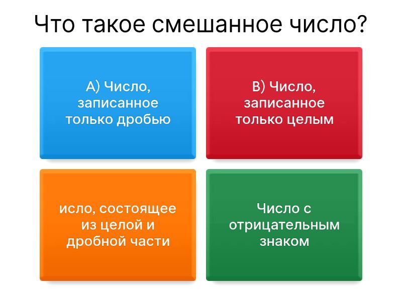 1) Что такое смешанное число? a) A) Число, записанное только дробью b) B) Число, записанное только целым c) исло, состоящее из целой и дробной части d) Число с отрицательным знаком 2) Как вычитают смешанные числа? a) Вычитают только дробные части b) Вычитают целые и дробные части отдельно c) Складывают дробные части d) Умножают числители 3) Как складывают смешанные числа? a) Складывают целые и дробные части отдельно b) Сначала умножают, потом складывают c) Складывают только дроби d) Складывают только целые части 4) Что нужно сделать, если дробные части имеют разные знаменатели? a) Перевести в проценты b) привести дроби к общему знаменателю c) Разделить знаменатели d) Перевернуть дроби 5) Что делать, если дробная часть уменьшаемого меньше дробной части вычитаемого? a) поменять числа местами b) Умножить дроби c) Сделать «занимание» из целой части d) Добавить единицу 6) 6. Что означает “выделить целую часть” из неправильной дроби? a) Дробь перевернуть b) разделить числитель на знаменатель c) умножить числитель и знаменатель d) Прибавить 1 к дроби 7) Как можно записать смешанное число по-другому? a) Только как десятичную дробь b) Как неправильную дробь c) Как натуральное число d) Как процент 8) Что называют неправильной дробью? a) Дробь, где числитель меньше знаменателя b) Дробь, равная нулю c) Дробь, где числитель больше или равен знаменателю d) Дробь, у которой знаменатель равен нулю 9) В каком виде смешанные числа проще складывать и вычитать? a) В виде неправильных дробей (если так удобнее) b) В виде процентов c) В виде десятичных дробей d) В виде степени 10) Что делают после сложения дробных частей, если получилась неправильная дробь? a) Выделяют целую часть b) Переворачивают дробь c) Делят дробь пополам d) Умножают дробь на 2