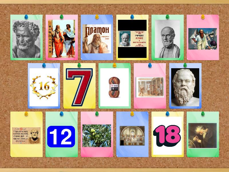 Гілка оливи-народився хлопчик, Вовняні нитки-народилась дівчинка, Навчання в грецьких школах з 7 років, "Любов до мудрості",наука ,що вивчає закони розвитку природи та людини, Афінська школа(Рафаель Санті), Геракліт "В природі все тече й змінюється.", Демокріт"Природа складається з атомів"., Сократ" Істина народжується в суперечці" " Я знаю,що нічого не знаю", Платон"Світ створений ідеальним розумом". Заснував Академію., Арістотель створив Лікей.(відставати не можна)), Піфагор створив математичну школу., Гіппократ-батько медицини.(Клятва Гіппократа), Геродот- батько історії., Навчити читати,писати,рахувати,музики. Фізичний розвиток., Вивчення граматики,риторики(красномовство), Період атлетичних вправ., Вік ефібів(військова та прикордонна служба),