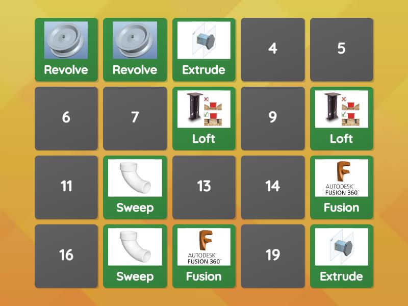 Revolve, Loft, Sweep, Extrude, Fusion, Polygon, Construct, Fillet, Shell, Cylinder,