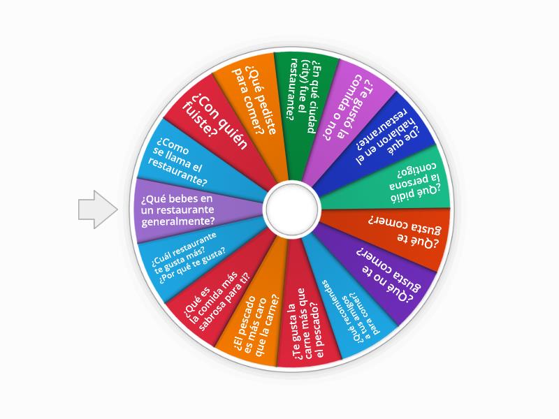 ¿Como se llama el restaurante?, ¿Con quién fuiste?, ¿Qué pediste para comer? , ¿En qué ciudad (city) fue el restaurante?, ¿Te gustó la comida o no?, ¿De qué hablaron en el restaurante?, ¿Qué pidió la persona contigo?, ¿Qué te gusta comer?, ¿Qué no te gusta comer?, ¿Qué recomiendas a tus amigos para comer?, ¿Te gusta la carne más que el pescado?, ¿El pescado es más caro que la carne?, ¿Qué es la comida más sabrosa para ti?, ¿Cuál restaurante te gusta más? ¿Por qué te gusta? , ¿Qué bebes en un restaurante generalmente? .