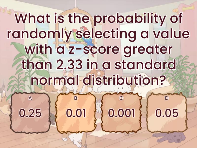 1) The probability distribution of a discrete random variable is also called _______________. a) Probability mass function b) Probability weight function c) Probability correspondence d) Probability Distribution of a Continuous Random variable 2) Which of the following is the value of it’s variance if the value of the standard deviation of the given probability distribution is 6? a) 6 b) 36 c) 72 d) 98 3) What happens to a normal distribution curve when the standard deviation increases? a) The curve becomes wider b) The curve becomes taller c) The curve becomes narrower d) The curve shifts to the right 4) What percentage of data lies between z = -1 and z = 1 in a standard normal distribution? a) 50% b) 68.27% c) 95.45% d) 99.73% 5) What sampling method involves listing population members and selecting samples at fixed intervals, known as sample intervals? a) Quota sampling b) Lottery sampling c) Systematic sampling d) Stratified random sampling 6) Which of the following most accurately explains the difference between a parameter and a statistic? a) A parameter and a statistic are essentially the same thing, just with different names depending on the context. b) Both a parameter and a statistic refer to numerical summaries of a sample, but a statistic is always more precise. c) A parameter is a numerical summary of a sample, while a statistic is a numerical summary of an entire population. d) A parameter is a numerical summary of an entire population, while a statistic is a numerical summary of a sample. 7) Which of the following is TRUE about the relationship between the population mean μ and the mean of the sampling distribution of the sample mean μ sub x̅ ? a) μ sub x̅ is always smaller than μ b) μ sub x̅ depends on the sample size n c) μ sub x̅ equals μ regardless of sample size d) μ sub x̅ equals μ only for normal populations 8) What formula is used to estimate population parameters when the variance is unknown? a) b) c) d) 9) How is the standard error of the sample mean determined when the population variance is known or unknown? a) b) c) d) 10) What does the Central Limit Theorem explain about the mean of the sampling distribution of the sample mean? a) The mean of the sampling distribution of the sample mean is larger than the population mean. b) The mean of the sampling distribution of the sample mean is exactly equal to the population mean. c) The mean of the sampling distribution of the sample mean is close to the population means if the sample size is large. d) The mean of the sampling distribution of the sample mean is equal to the population mean divided by the square root of the sample size. 11) What is the mean of the sampling distribution if the population mean is 19.5? a) less than 19.5 b) larger than 19.5 c) closer to 19.5 d) exactly the same as 19.5 12) What is the standard error of the mean when the sample size is 15 and the population standard deviation is 20? Use the formula S=σ/√n a) 5.16 b) 5.17 c) 5.18 d) 5.19 13) What is the mean and standard deviation of the sampling distribution of the mean when n = 14, given a population mean of 30 and a standard deviation of 5? a) X ̅=15,s=1.30 b) X ̅=15,s=1.34 c) X ̅=30,s=1.34 d) X ̅=30,s=1.30 14) What does the standard error of the mean represent? a) The variability of the individual data points in a dataset. b) The measure of the average deviation of individual data points from the mean. c) The degree of accuracy of the sample means as an estimate of the population mean. d) The average of the squared differences between the sample mean and the population mean. 15) What are all the possible samples of size 2 that can be drawn with replacement from a population containing the values {2, 4, 6}? a) {2,4,6} b) {(2,2),(2,4),(2,6),(6,2),(6,4),(6,6)} c) {(2,2),(2,4),(2,6),(4,2),(4,4),(4,6)} d) {(2,2),(2,4),(2,6),(4,2),(4,4),(4,6),(6,2),(6,4),(6,6)} 16) Which of the following cases is the sample size considered sufficiently large? a) n≥30 b) n≤30 c) n≥50 d) n≤50 17) Which probability distribution is used when the population variance is unknown and/or the sample size is small? a) chi distribution b) p-distribution c) t-distribution d) z-distribution 18) Who introduced the t-distribution in 1908? a) Ronald A. Fisher b) Wilhem G. Student c) William S. Gosset d) William A. Student 19) What is the probability that the student is wearing rubber shoes if a student is selected randomly in a class of 40 students, eight are wearing rubber shoes? a) 2/10 b) 3/10 c) 8/40 d) 40/40 20) Consider the discrete random variable Z with the following probability distribution: P(Z = 1) = 0.6, P(Z = 2) = 0.3, P(Z = 3) = 0.2, and P(Z = 5) = 0.1. What is the mean of Z? a) 2.1 b) 2.2 c) 2.3 d) 2.4 21) Given a discrete random variable N, with a mean of 5 and a variance of 1, which one of the following statements is true? a) N is always equal to 5 with no variation. b) N has a probability distribution that is heavily skewed. c) The values of N are concentrated around the mean with little spread. d) On average, N is expected to take values near 5, and the values of N are spread out by a factor of 1. 22) What is the probability of randomly selecting a value with a z-score greater than 2.33 in a standard normal distribution? a) 0.01 b) 0.05 c) 0.25 d) 0.001 23) Using the standard normal table, what is the z-score corresponding to the 90th percentile? a) 0.90 b) 1.28 c) 1.96 d) 1.645 24) A college aims to estimate the average weekly study time of its students. With a total of 5,000 students, a researcher randomly selects a sample of 50 students, records their weekly study hours, and calculates the sample mean. Which of the following statements correctly describes the sampling distribution of the sample mean? a) It is a distribution of the weekly study hours for all 5,000 students. b) It is a single value representing the mean study hours of the sample. c) It is the difference between the largest and smallest study hours in the samp