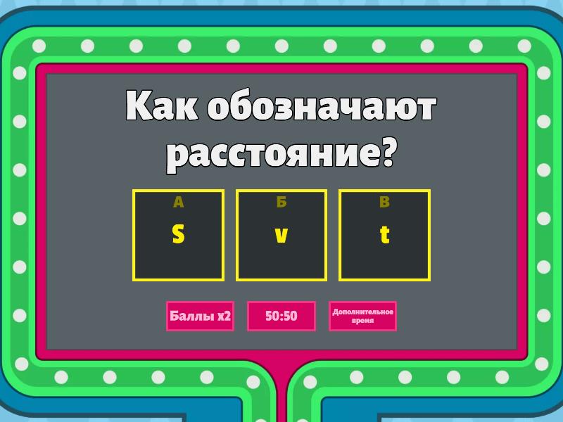 1) Как обозначают расстояние? a) S b) v c) t 2) Укажи формулу нахождения времени. a) S=v·t b) t=S:v c) v=S:t 3) С какой скоростью может двигаться лыжник? a) 3 м/ч b) 70 км/ч c) 12 км/ч 4) За 2 ч без остановок велосипедист проехал 30 км. С какой скоростью ехал велосипедист? a) 30 км/ч b) 15 км/ч c) 60 км/ч 5) Оса пролетела за 2 мин 300 м. С какой скоростью летела оса? a) 150 м/мин b) 160 м/мин c) 600 м/мин 6) Пешеход идёт со скоростью 5 км/ч. За сколько часов он может пройти 15 км? a) 3 ч b) 5 ч c) 45 ч 7) Поезд шёл без остановок 3 ч со скоростью 90 км/ч. Какое расстояние он прошёл за это время? a) 210 км b) 270 км c) 30 км 8) За 3 ч автобус проехал без остановок 75 км. С какой скоростью ехал автобус? a) 225 км/ч b) 78 км/ч c) 25 км/ч 9) Лыжник бежит со скоростью 200 м/мин. За сколько минут он пробежит 800 м? a) 4 мин b) 40 мин c) 10 мин 10) Скорость самолёта 900 км/ч. Сколько километров он пролетит за 3 ч? a) 300 км b) 2700 км c) 270 км