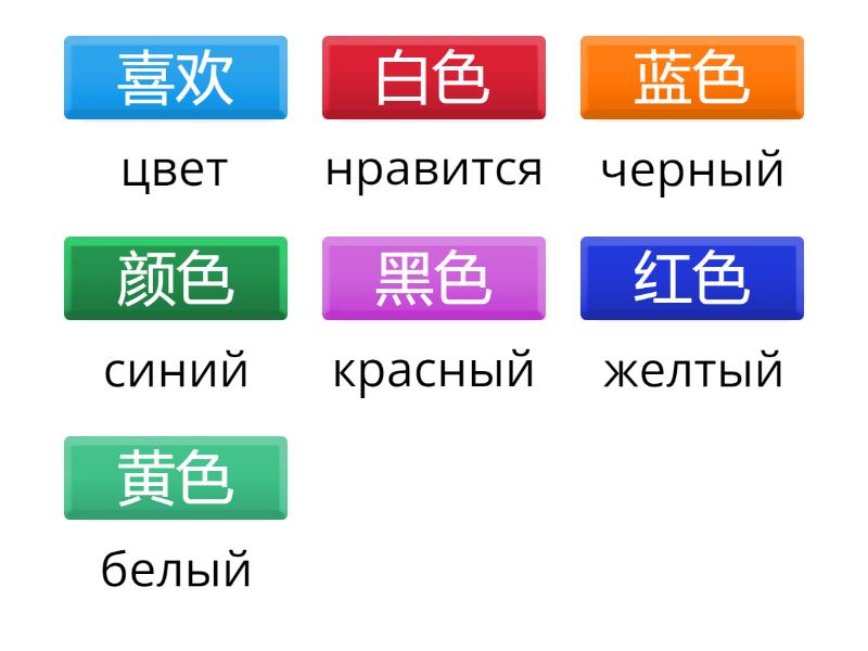 喜欢 - нравится, 颜色 - цвет, 红色 - красный, 黄色 - желтый, 蓝色 - синий, 白色 - белый, 黑色 - черный,