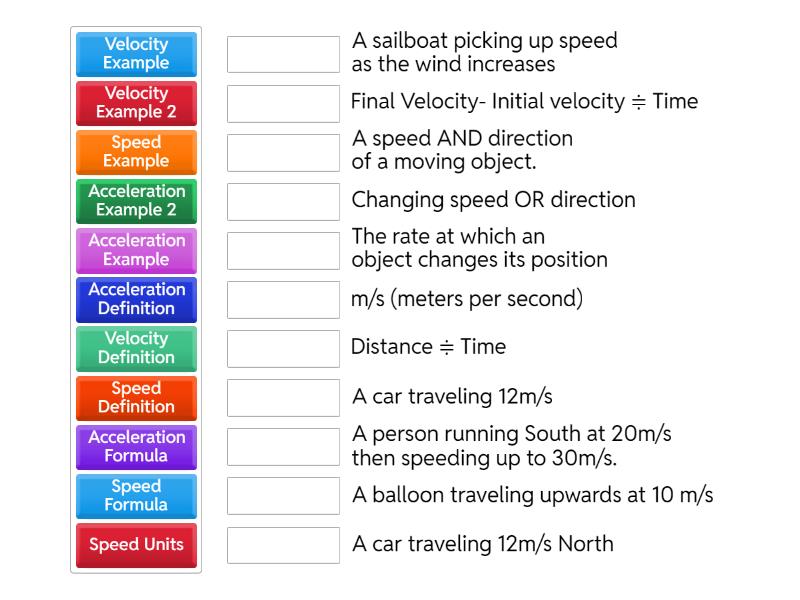 Speed, Velocity and Acceleration Sort