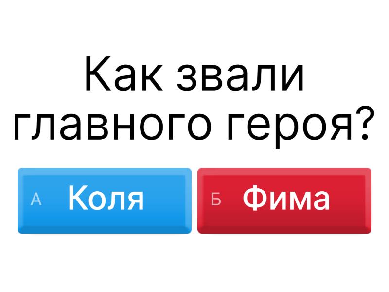 1) Как звали главного героя? a) Коля b) Фима 2) В каком классе и в какой школе учится Коля? a) 6 А класс 26-школе b) 6 Б класс 26 московской школе 3) Что отдает сосед Коли? a) Ключи b) Бумагу 4) В какой год попадает Коля в будущем? a) 2082 b) 2182 5) Как люди передвегались? a) На летающих машинах? b) на пузере c) летающими кедами d) на ракете 6) Что было в столбиках? a) еда b) игрушки 7) Куда попадает Коля в первый раз a) На луну b) Космодром-1 8) Как звали друга Коли? a) Федя b) Фима 9) Что такое миелефон a) Радио b) прибор читающие мысли 10) Кого увидел Коля в космозоо? a) Алиса Селезнева b) Алиса Сергеевна