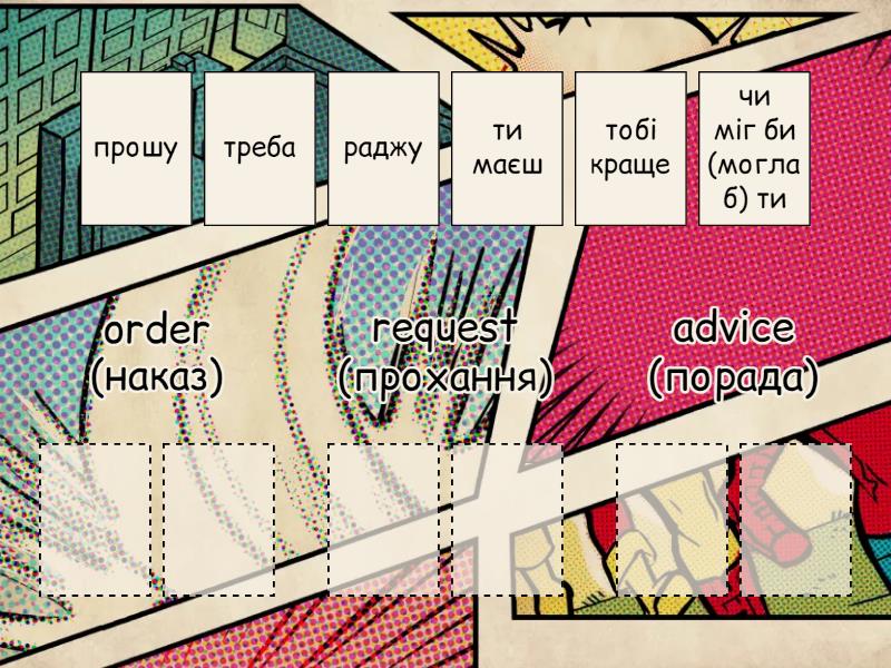 order (наказ): треба, ти маєш, request (прохання): прошу, чи міг би (могла б) ти, advice (порада): раджу, тобі краще,