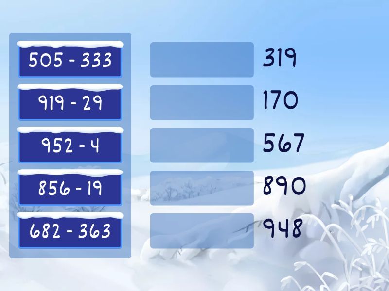 952 - 4 - 948, 682 - 363  - 319, 505 - 333 - 170, 856 - 19 - 567, 919 - 29 - 890,