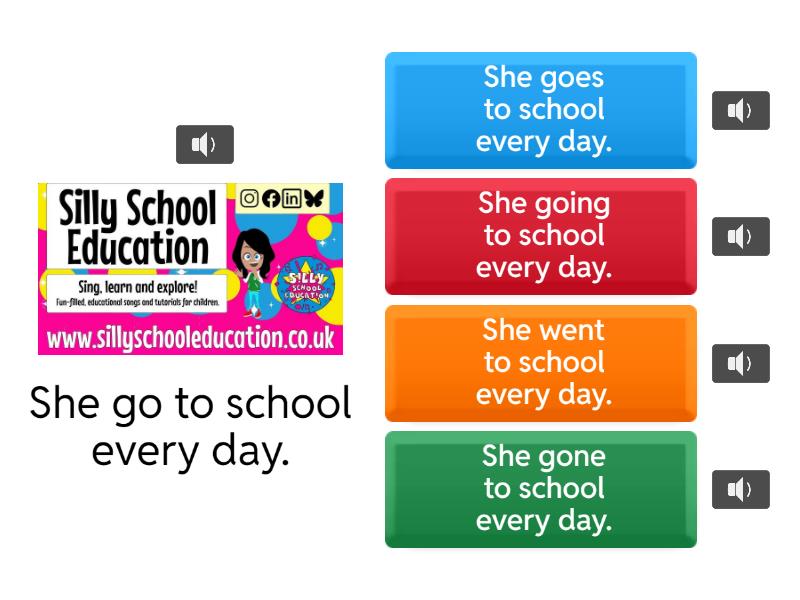 1) She go to school every day. a) She goes to school every day. b) She going to school every day. c) She went to school every day. d) She gone to school every day. 2) He don't like apples. a) He doesn't like apples. b) He not like apples. c) He didn't like apples. d) He doesn't likes apples. 3) They is playing soccer now. a) They are playing soccer now. b) They was playing soccer now. c) They were playing soccer now. d) They be playing soccer now. 4) I has a new book. a) I have a new book. b) I having a new book. c) I had a new book. d) I has got a new book. 5) We was at the park yesterday. a) We were at the park yesterday. b) We are at the park yesterday. c) We be at the park yesterday. d) We is at the park yesterday. 6) She can sings very well. a) She can sing very well. b) She can sang very well. c) She can sung very well. d) She can singing very well. 7) The cat is sleep on the bed. a) The cat is sleeping on the bed. b) The cat sleep on the bed. c) The cat sleeps on the bed. d) The cat slept on the bed. 8) Do you likes pizza? a) Do you like pizza? b) Do you liked pizza? c) Do you liking pizza? d) Do you likes pizzas? 9) There is many books on the table. a) There are many books on the table. b) There was many books on the table. c) There is much books on the table. d) There be many books on the table. 10) He have two brothers. a) He has two brothers. b) He having two brothers. c) He had two brothers. d) He haves two brothers.