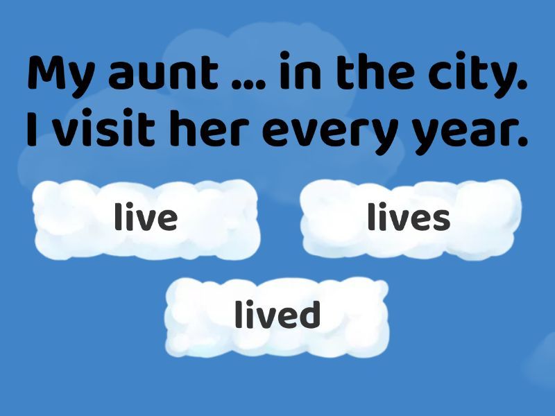 1) My aunt ... in the city. I visit her every year. a) live b) lives c) lived 2) Dinosaurs ... planes. a) didn't see b) don't see c) didn't saw 3) Steve ... sunbathing last Saturday. a) didn't go b) doesn't go c) wasn't go 4) It ... cold yesterday. a) were b) did c) was 5) ... your brother drive a car? a) Is b) Does c) Do 6) The men ... a fire in the forest. a) didn't made b) didn't make c) weren't make 7) ... you at home now? a) Is b) Are c) Were 8) ... Bob in the park three days ago? a) Was b) Were c) Is 9) My sister ... ususally stay at home on Sundays. a) isn't b) don't c) doesn't 10) ... you spend your last holidays in the summer camp? a) Was b) Were c) Did 11) My parents ... at home yesterday. a) wasn't b) weren't c) didn't 12) When did you go for a picnic? - ...  a) Last month. b) It was interesting. c) On the slides. 13) Look! There ... some beautiful flowers in the garden. a) is b) are c) was 14) ... any sweets on the table yesterday? a) Were b) Was c) Are 15) Is there a big bear at the zoo? - Yes, ... a) there is. b) it is. c) it isn't. 16) Where ... you see a kangaroo? a) was b) did c) were 17) How ... your summer camp? a) was b) did c) were 18) There ... an apple on the plate five minutes ago. a) wasn't b) isn't c) didn't 19) We didn't ... any berries in the forest last Sunday. a) found b) find c) founded 20) ... did Mr Brown catch this crab? - In the lake. a) Where b) Why c) When