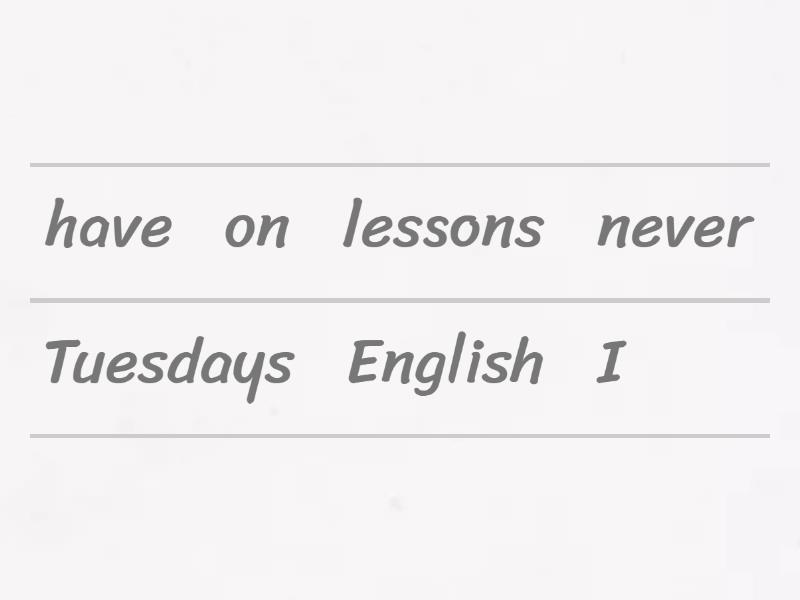 I never have English lessons on Tuesdays, My classmates and I always do our homework, Juli often listens to music, The girls sometimes play football, I usually hang out with my friends, My grandad usually goes to bed early, I always have mill for breakfast, My friend has a music lesson on Fridays, My cat has dinner at 9:00, My classmate never does the homework,