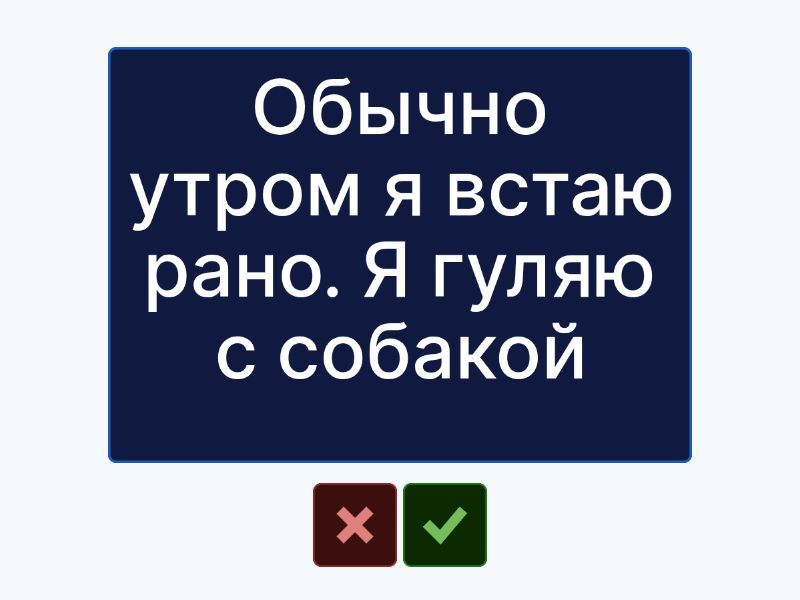 Я иду в бар. Хочу купить мороженого., Обычно утром я встаю рано. Я гуляю с собакой, Надо открыть окно. В комнате очень жарко., Я ем мало. Я хочу похудеть., Она позвонила маме. Она хочет поздравить её с днём рождения., Я учу русский язык. Я хочу работать в России., Ты должен пойти в аптеку. Надо купить это лекарство котикам., Завтра надо встать рано. Мы не должны опоздать на этот поезд., Мы едем в магазин. Мы должны купить тебе новую куртку., Мы поедем в магазин. Ты должен купить себе новую куртку., Позвони мне на Вотсапп. Я хочу увидеть твой номер телефона., Я не даю тебе сладкое. Ты должен похудеть., Она ест мало. Её цель - похудеть на 5 килограммов.,