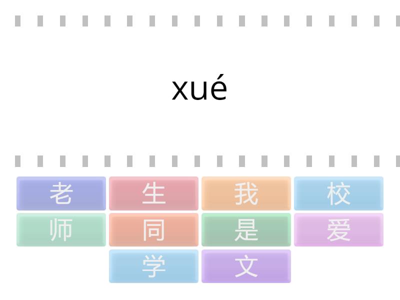 学 - xué, 生 - shēng, 我 - wǒ, 是 - shì, 爱 - ài, 老 - lǎo, 师 - shī, 同 - tóng, 文 - wén, 校 - xiào,