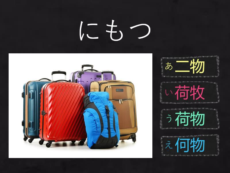 1) にもつ a) 二物 b) 荷牧 c) 荷物 d) 何物 2) もの a) 者 b) 物 c) 品 d) 個 3) たべもの a) 飲べ物 b) 食べ物 c) 建べ物 d) 良べ物 4) たてもの a) 食物 b) 健物 c) 律物 d) 建物 5) たてる construir a) 立てる b) 建てる c) 笠てる d) 律てる 6) こんや esta noite a) 今夜 b) 毎晩 c) 今晩 d) 毎夜 7) よる a) 便 b) 勉 c) 晩 d) 夜 8) たいふう a) 大風 b) 台凪 c) 大凪 d) 台風 9) かぜ a) 邪風 b) 風才 c) 才 風 d) 風邪 10) だいどころ a) 大所 b) 台場 c) 台所 d) 大根 11) いちだい Contagem de máquinas e masas a) 1台 b) 1第 c) 1大 d) 1代
