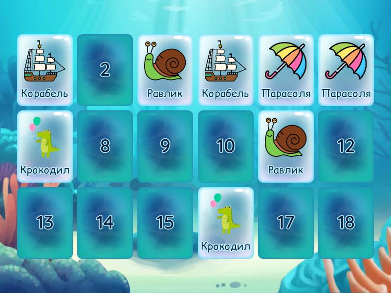 Крокодил, Парасоля, Корабель, Равлик, Королева, Король, Штурвал, Ролики, Корали,