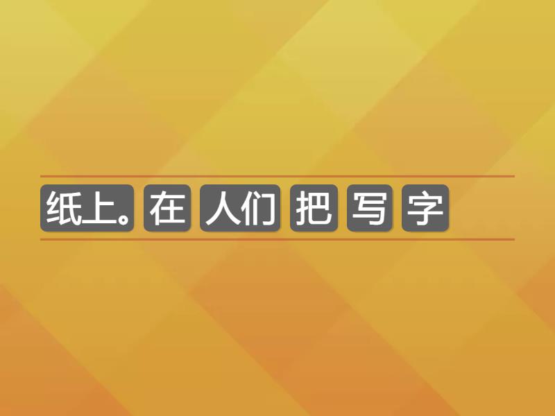 人们 把 字 写 在 纸上。, 老师 把 书 放 在 课室。, 方方 把 名字 写 在 书上。, 妈妈 把 花 种 在 花园里。, 爸爸 把 车 停 在 街道口。, 古 代 没有 纸。, 中国 有条 大江 叫 长江。, 人们 把 字 写 在 竹片上。, 那张 是 我的 画画儿。, 我 常常 听 中文 歌。, 那张 画儿 是 云云 画的。, 这家 书店里 有 没有 儿童 画报?, 这本 书 是 在 那个 书店 买的。, 信 是 爸爸 写的。,