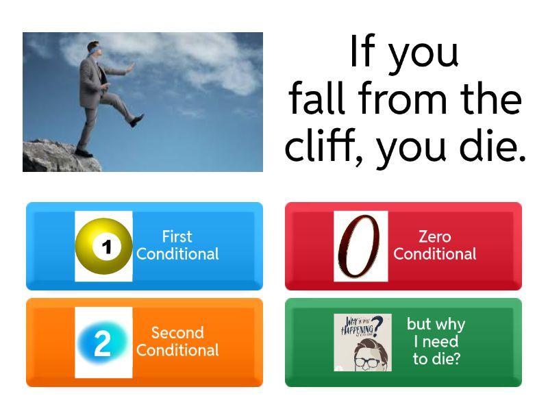 1) If you fall from the cliff, you die. a) First Conditional b) Zero Conditional c) Second Conditional d) but why I need to die? 2) If we win the war, we ____ be legends! a) were b) was c) wore d) will e) would 3) If I had enough money, I would buy a giant sandwich. a) Second Conditional b) First Conditional c) Zero Conditional d) Third Conditional e) One hundredth Conditional 4) If I ____ study, I ____ fail the test. a) didn't, will b) have,won't c) don't , will d) will not ' willn't e) did ,won't f) will , will 5) If we ___ (not) eat food, we ___ not be alive. a) don't, will b) willn't, won't c) can't, will 6) If I drink water I ___ die from dehydration. a) won't b) not c) will'nt d) willen'ten't'ent'en'an't'ent't'ent'ent'et'enten'ten't e) will f) wot 7) If I die, I die. a) 0 conditional b) 1st conditional c) 2nd conditional d) 3rd conditional 8) If I were you, I would talk to Suzan. a) First Conditional b) Cosend Nocditional c) Zero Conditional d) Cosend Conditional e) Second Conditional f) Second Nocditional 9) If it rains, I ___ go outside. a) won'tn't b) will'nt c) won't d) were e) will f) ew 10) If I answer correctly, I ___ win. a) will b) won'nt c) 0 conditional d) would e) -1 conditional f) 1 conditional 11) If I ___________ food, it will be cold. a) am b) not cooked c) don't cookd d) don't cook e) do'nt cook f) don't cok 12) What _____ happen if burglars _____ into your house? a) will, steal b) would , break c) will , brake d) would, broke e) will, break 13) If the quiz _______ good, you will like it. a) no b) were'nt c) will'nt be d) yes e) is f) was
